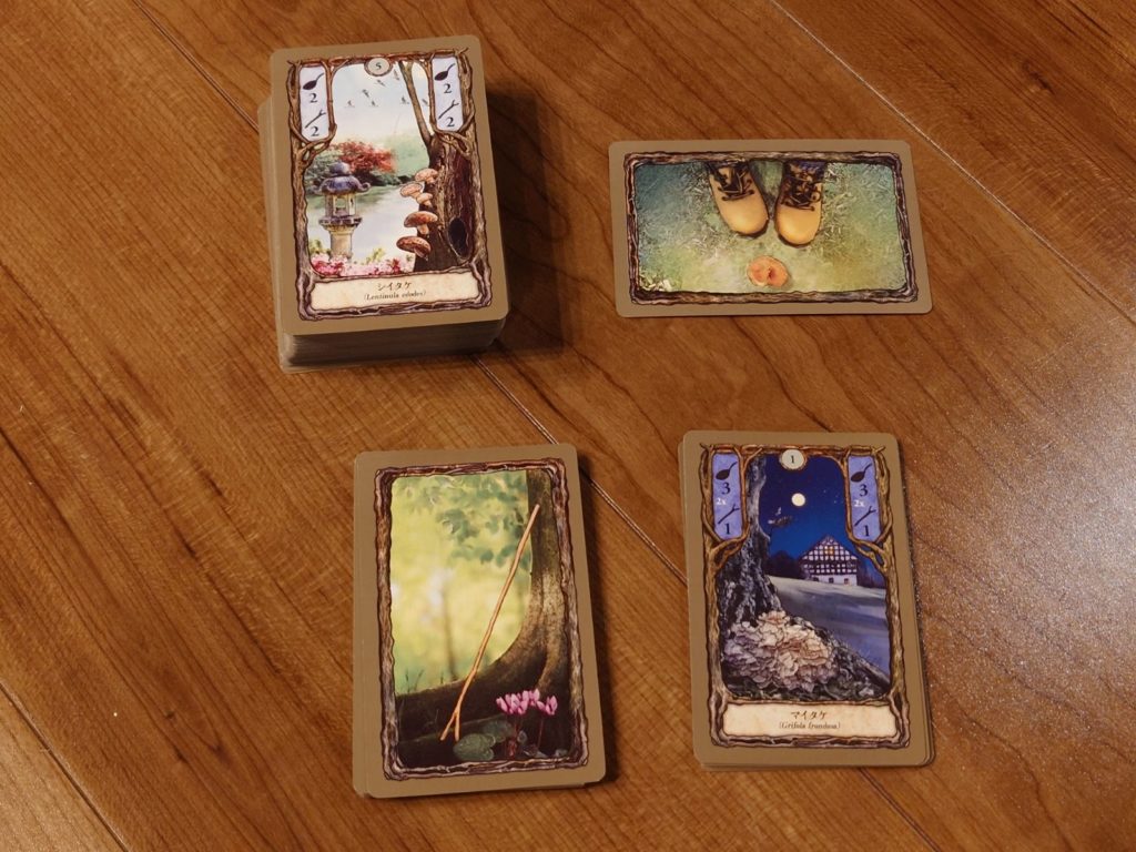 カードの中にはきのこカードや、杖カード、夜カード、足元カードなどがあります。イラストは写実的で、森の中できのこ狩りをしている気分にさせてくれます。