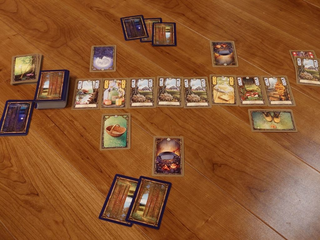 ポイントは、「遠くのカードを取るには、対応する距離分の“杖カード”が必要」というルール。