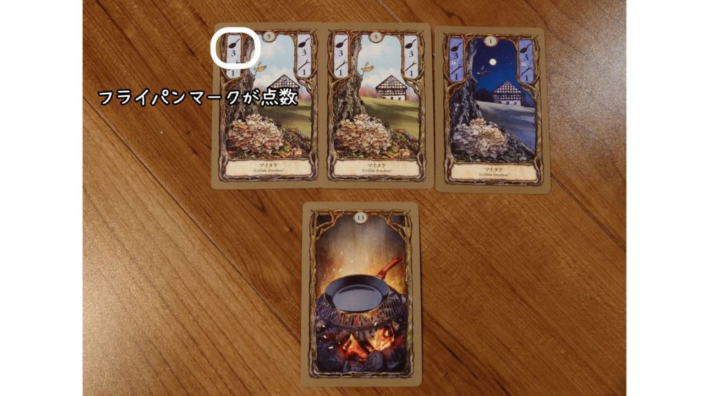 同じ種類の”きのこ”が3枚以上ある時に、フライパンカードを使って料理をする事が出来ます。