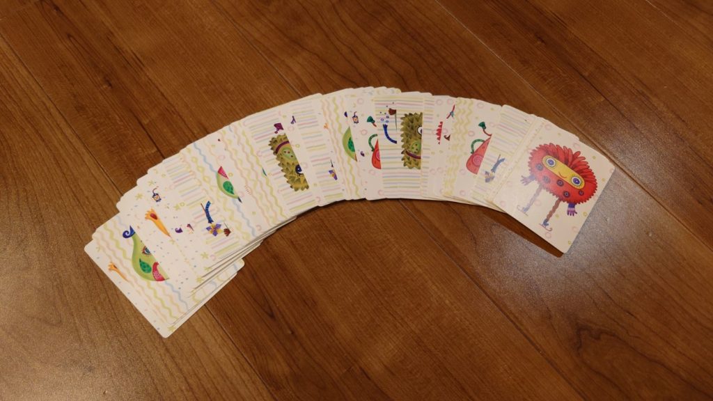 正確に最も早く名前を叫んだプレイヤーが、それまで重ねられてきたカードを全て獲得します!