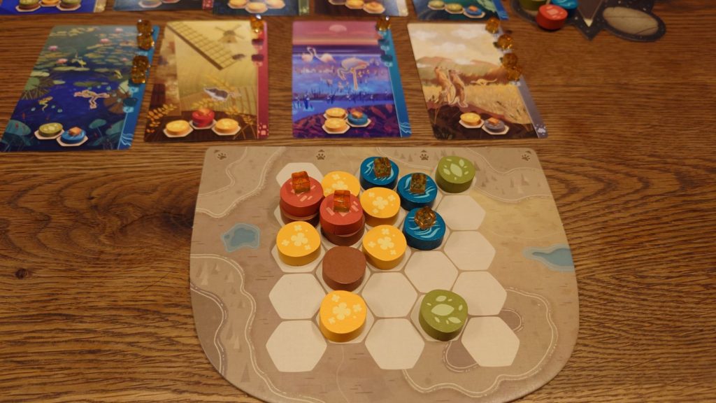 自分のボードには5段のタイル置き場があり、それぞれ必要な個数が違います。この個数に合わせ場から取ってくる事がポイント!